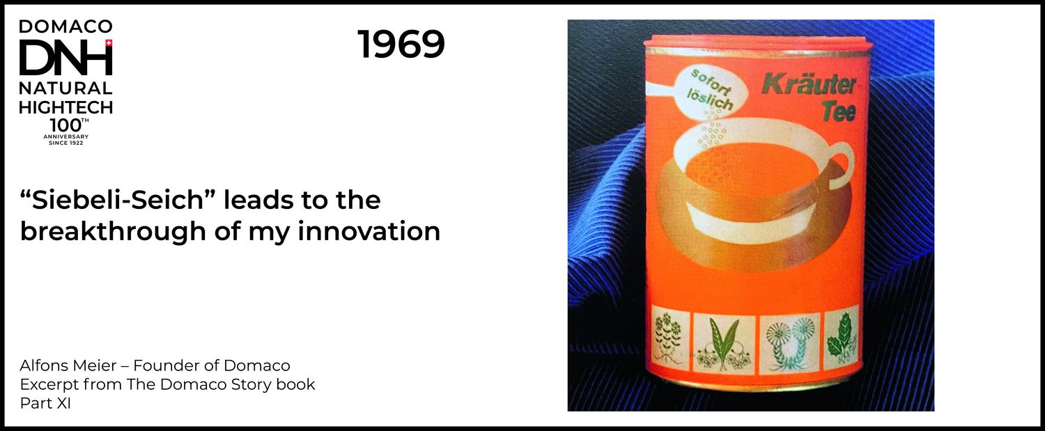 Even in those days, I was always studying and researching another absolute novelty: the project for an instant tea. I thought that if the cough sweets were dissolved in water, this might make a fine tea to relieve coughs. We involved tasters in drugstores who promoted our idea. But that did not go so smoothly. When we investigated, we found that the housewives found it difficult to dissolve the sweets because our product was a hard boiled sweet. It was hard as a rock and could only be dissolved with a lot of patience and time, stirring constantly in cold to warm water. In hot water, the sweet turned into a thick lump. Naturally the customers were put off by this. They appreciated the good tea, but thought it was too complicated and time-consuming to make. I studied this problem for a long time. I thought there must be something to make a herbal extract in an instantly soluble form. Although this name was not yet known at the time, the search for the “instant drink” had begun… All this time, and later, I was experimenting on the idea of an instant tea in the basement. Instant Nescafé already existed back then. However, the product didn’t have the best reputation because in the beginning Nescafé was still a fine powder that didn’t dissolve easily. But then Nestlé made the absolute breakthrough with its Nescafé Gold. This was something completely different, a beautiful, aromatic granulate that dissolved in water instantly and also in milk without any problems.