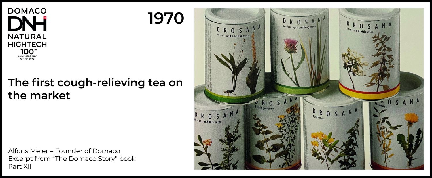 In October 1970, we started with a production order of 20,000 tins of cough-relieving tea. Amidro called this product “Drosana Hustentee” (Drosana cough-relieving tea). By the end of 1970, the first 2,000 tins had already been sold. Orders arrived en masse in January and February. In the spring of 1971, we had already delivered the first 100,000 tins.