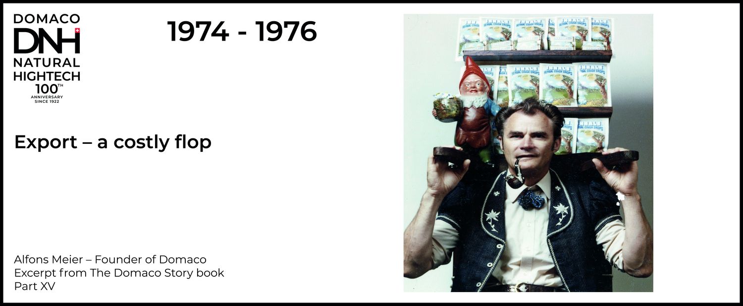 I wanted to really push the export business that I had cultivated in the past. At first I thought of expanding the market into the northern countries, which seemed to me to be particularly suitable as consumers of hot teas. I travelled all over Scandinavia as early as 1974 and successfully sold my Domaco teas and the already well-known cough sweets by the lorry load. Other countries were added later. This really made me want to open up other countries with my products and I decided to hire an export manager…