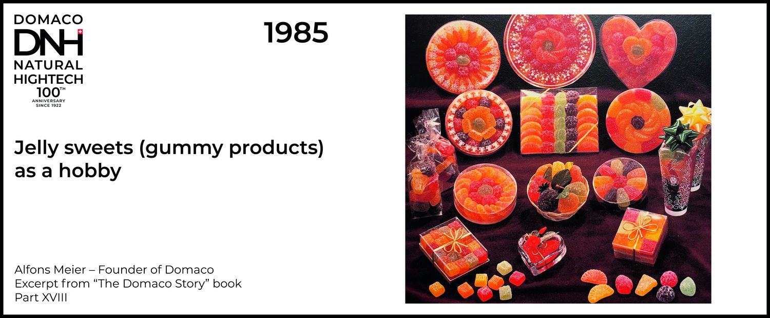 In the following years too, we were able to record above-average production figures, so as early as 1984 I was looking into an extension building again… The second new building was inaugurated in 1986. As I was concerned about too many empty production rooms, I bought the Belart company in 1985, which had already been producing fine confectionery for about 30 years. This company produced the very best jelly sweets on the market. The company also carried a very special exclusive in its range, a jelly sweet filled with various liqueurs called “Fruitbela”, which was and is unique. The production process is correspondingly tricky. I have always been interested in jelly sweets, which was also the reason why I bought the whole company with all the rights.