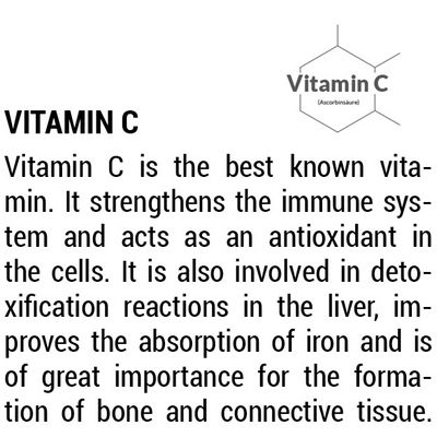Vitamin C is a real all-rounder and is undoubtedly one of the best known vitamins of all. It is involved in numerous metabolic processes and plays a very special role in strengthening your immune system. Vitamin C, also known as ascorbic acid, is one of the water-soluble vitamins along with the B vitamins and folic acid. This means that it can only be stored in the body in small amounts and therefore has to be taken in daily with food. Vitamin C is found in large quantities, especially in fresh vegetables and (citrus) fruits.