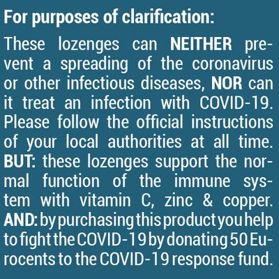 Pandemics have repeatedly afflicted people. With the new, rapidly spreading corona virus, mankind is confronted with a frightening situation that determines everyday life. However, if we all strictly follow the recommendations of health organisations and local authorities, we will also survive this crisis in good health. Vitalp wants to contribute to the fight against COVID-19 and is launching a limited product campaign for a good cause: the Immune System Boost lozenges. With the recommended daily amount of vitamin C, the minerals zinc and copper and the natural extracts of elderberry and icelandic moss, you get an extra boost to strengthen your immune system. With two lozenges a day, you support the normal function of your immune system and help to protect the cells from oxidative stress. With the purchase of the product, your donation also supports all actions to contain COVID-19.