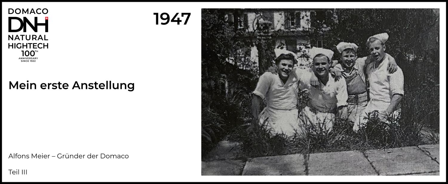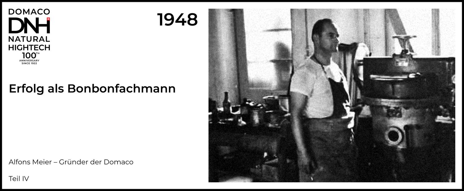 Ende der vierziger Jahre – ich absolvierte gerade meine Rekrutenschule in Basel – machte mich ein Kollege auf ein Inserat aufmerksam: Ein Unternehmen in der Region suchte einen Bonbonfachmann. Mein Kollege hatte sich auf das Inserat hin vorgestellt; fühlte sich aber für diese Tätigkeit zu gut, da ja noch keine Bonbons produziert werden zurzeit. Er sagte, „er kenne einen guten Mann für den ausgeschriebenen Posten“. Er drängte mich: „Du musst dich da melden, das ist genau das Richtige für Dich.“ Auf meine Vorbehaltungen, dass ich doch keine Bonbonfachmann sei, meinte er: „Versuch es doch einfach, wir helfe dir dann schon, wenn Du Probleme haben solltest.“