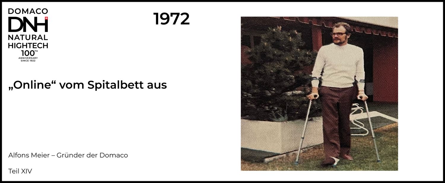 1972 zog ich mir bei einem bösen Skiunfall eine Fussgelenk-Trümmerfraktur zu. Ich kam ins Spital nach Ilanz und später ins Balgrist nach Zürich. Meine älteste Tochter Silvia war damals in England zu einem Sprachaufenthalt. Sofort telefonierten wir ihr, sie solle doch zurückkommen, da wir unbedingt jemanden fürs Büro benötigen. Während ich als Patient im Balgrist meinen Fuss kurierte, schaute meine Tochter in unserem Betrieb zum Rechten. Und während sie als kaufmännisch ausgebildete Fachfrau Ihre Aufgabe bestens bewältigte, telefonierte ich praktisch den ganzen Tag und hielt meine Beziehungen zu meinen Geschäftspartnern vom Spitalbett aus aufrecht, ich war ja nicht wirklich krank. Damals gab es in den Spitälern noch keine privaten Telefonanschlüsse; alles Telefonate mussten von der Zentrale „durchgestöpselt“ werden. Da kam eines Tages ein Elektriker in mein Zimmer und fing an, Kabel zu verlegen. Auf meine Frage, was er da tue, sagte er, er müsse für mich ein eigenes Telefon installieren. Wer denn das angeordnet habe, wollte ich wissen, worauf er mich an die Spitalleitung verwies. Dort erhielt ich die Auskunft, dass ich mit meiner Telefoniererei die telefonische Anlage des Spitals lahmlegte. Darum bekäme ich jetzt eine eigene Telefonlinie, das koste mich nichts. So konnte ich – sozusagen online – vom Spitalbett aus mein damals kleine Drei-Mann-Unternehmen führen.