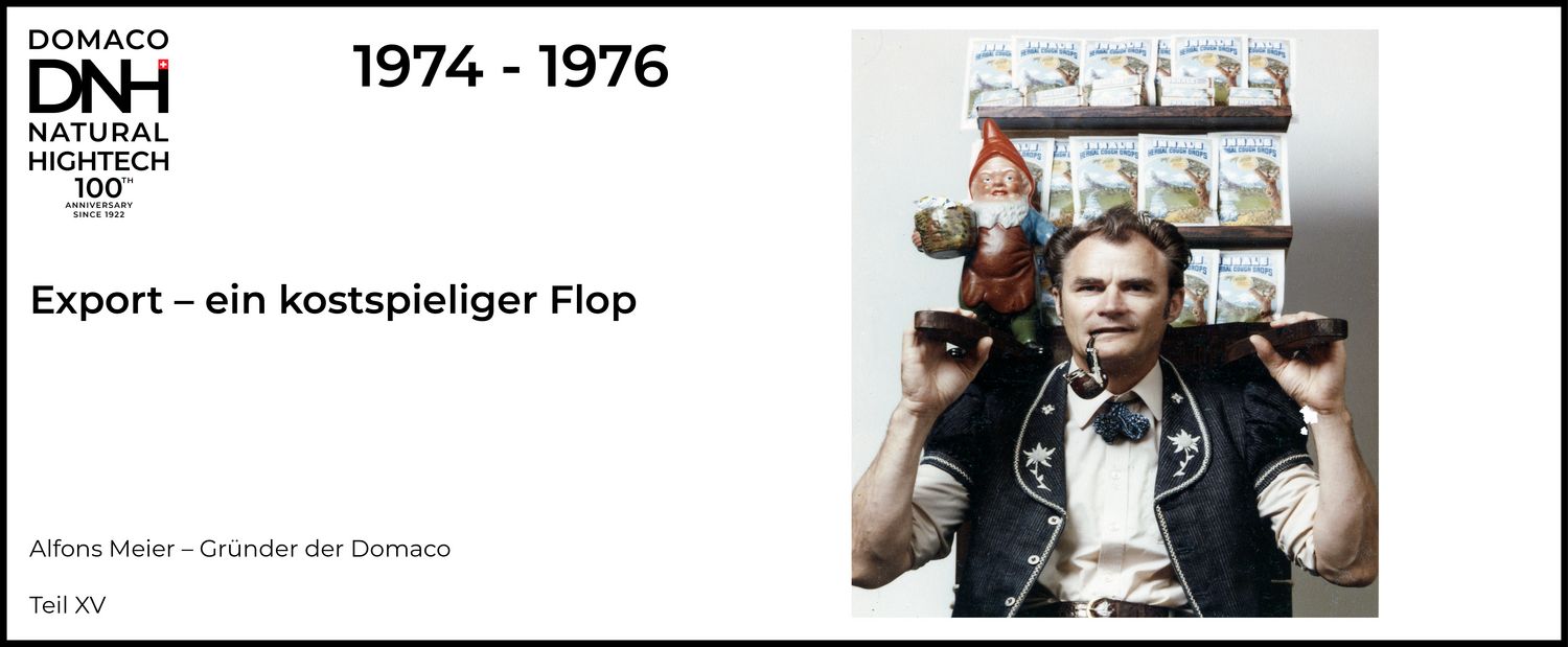 Ich wollte das früher gepflegte Exportgeschäft gezielt forcieren. Zuerst dachte ich an eine Markterweiterung in den nördlichen Ländern, die mir als Konsumenten von heissen Tees besonders geeignet schienen. Schon 1974 bereiste ich ganz Skandinavien und verkaufte mit Erfolg camionweise meine Domaco-Tees sowie den bereits gekannten Hustenzucker. Später kamen dann noch weitere Länder dazu. Daraufhin bekam ich grosse Lust, auch weitere Länder mit meinen Produkten zu erschliessen und entschied, einen Exportleiter einzustellen....