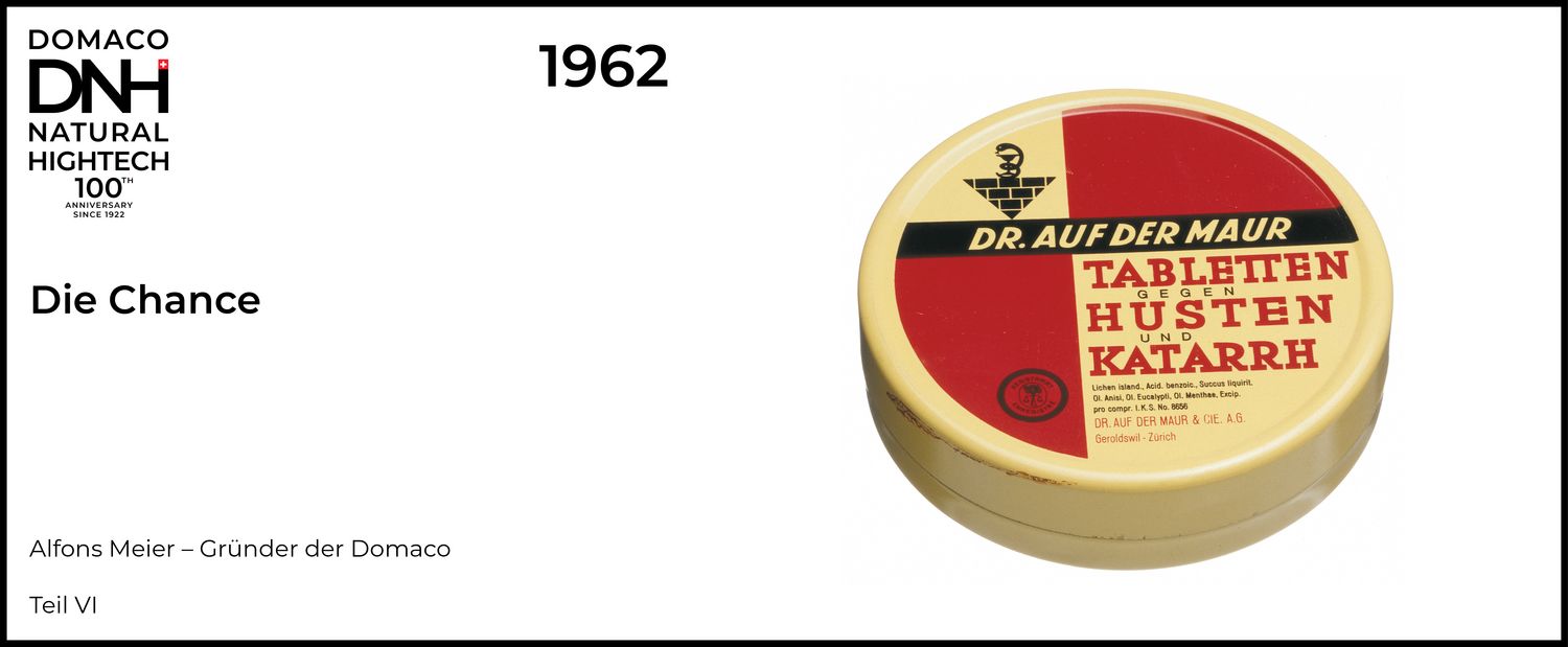 Die erste Tätigkeit als selbständiger Unternehmer war das Sortiment zu überprüfen, neue Produkte zu entwickeln. Ich hatte soeben ein neues Bonbon entwickelt unter dem Namen Dr. med. Aufdermaur. Natürliche hatte die Masse eine sehr wertvolle Zusammensetzung – mit zwanzig auserlesenen Kräutern – ich nannte dieses Bonbon Hustenzucker. Als Verpackung für mein neues Produkt kam natürlich die altväterische runde Blechdose der Dr.-med.-Aufdermaur-Tabletten nicht in Frage. Ich kreierte eine moderne Taschenpackung, die sich gut öffnen liess.